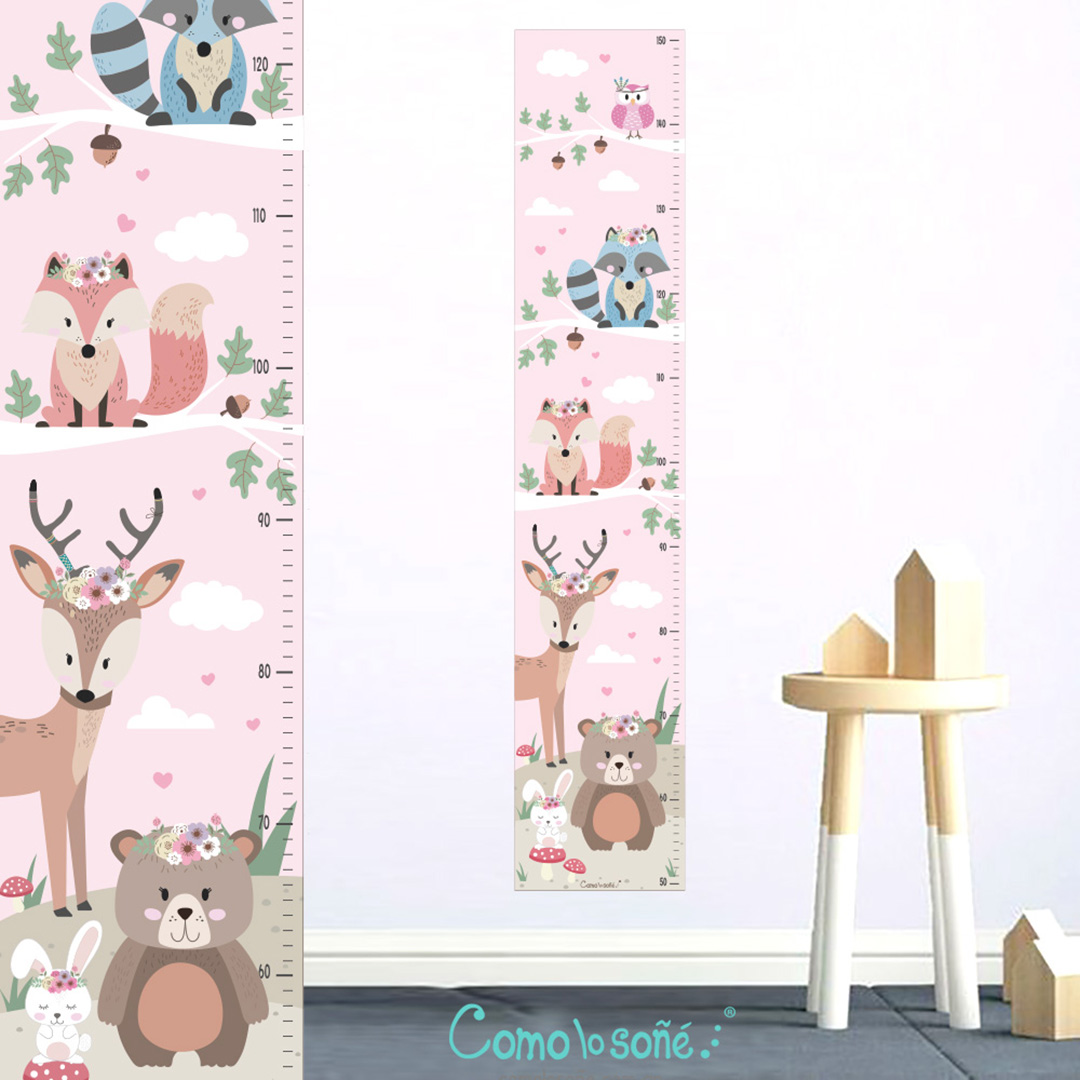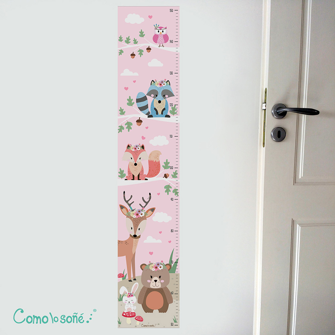 ANIMALITOS NORDICOS ROSA Medidor de altura autoadhesivo