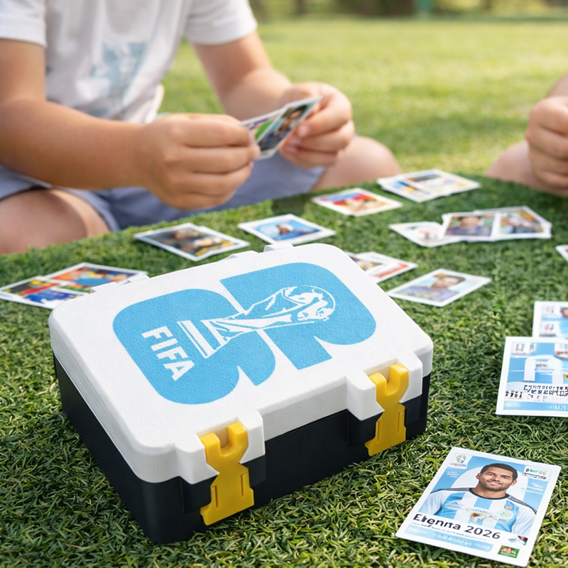 Organizá, protegé y llevá tus figuritas y cartas coleccionables de forma práctica, segura y con estilo. Ideal para niños fanáticos del fútbol y coleccionistas.