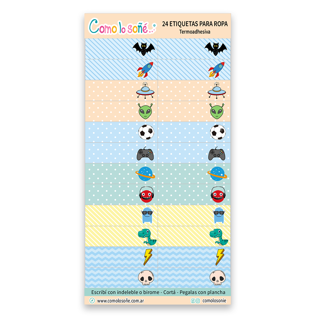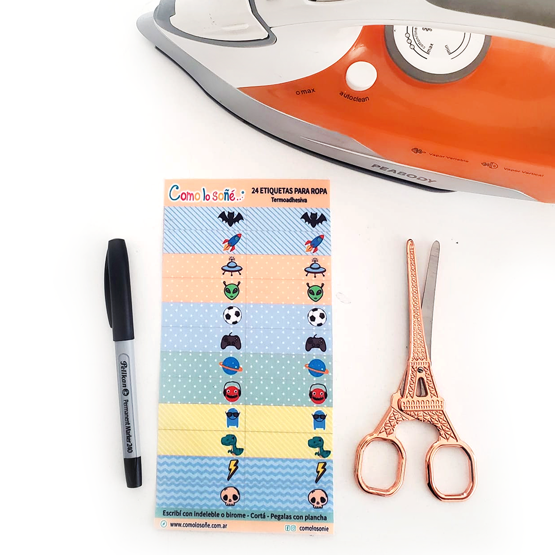 COMBO DE 94 ETIQUETAS EXPRESS PARA ESCRIBIR para Ropa y Objetos. Modelo: Gamer