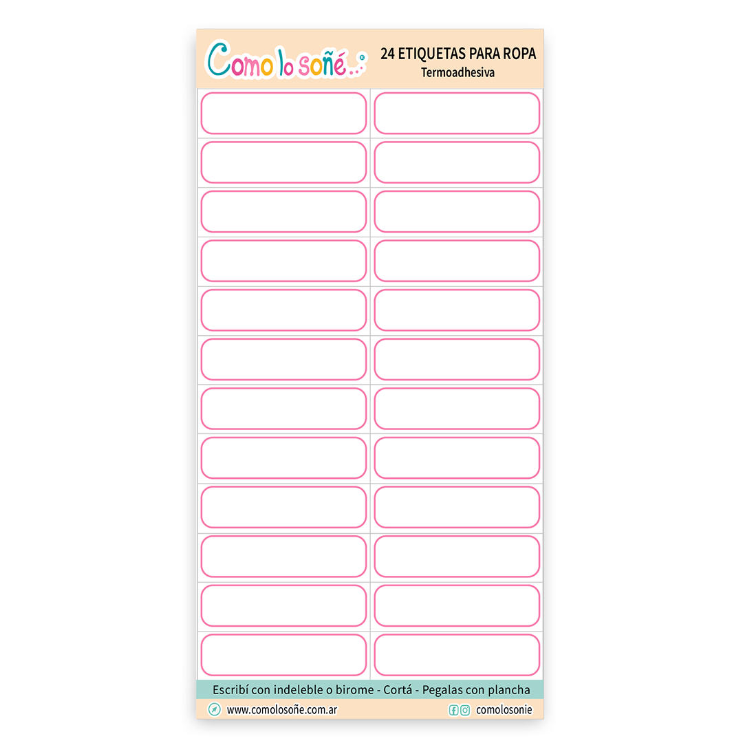 ETIQUETAS EXPRESS PARA ESCRIBIR o sellar, de Tela termoadhesiva, para Ropa. En stock!!! Marco rosa