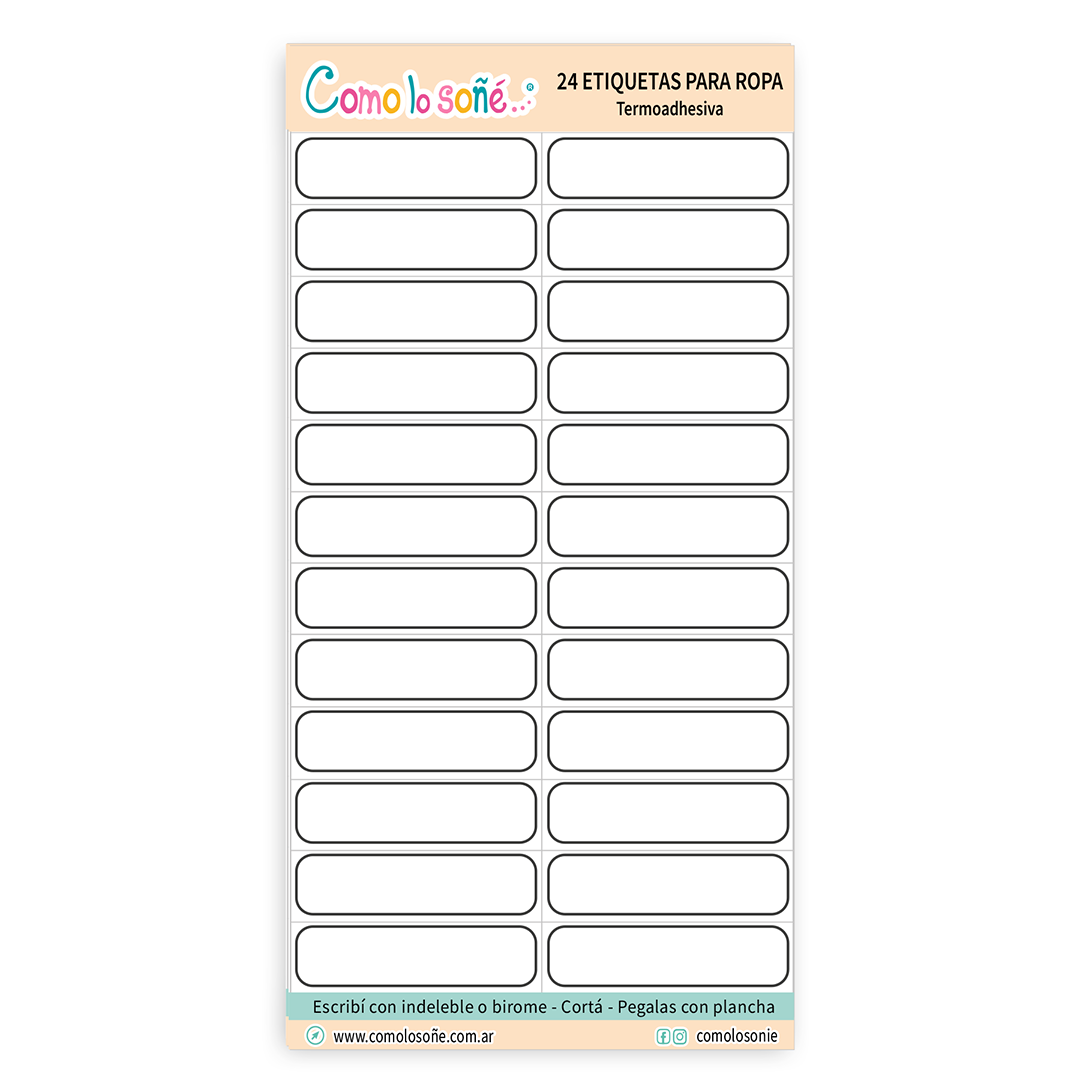 24 Unidades de etiquetas de tela termoadhesiva, para escribir con marcador indeleble o sellar con el sello textil y pegar con plancha en la ropa.